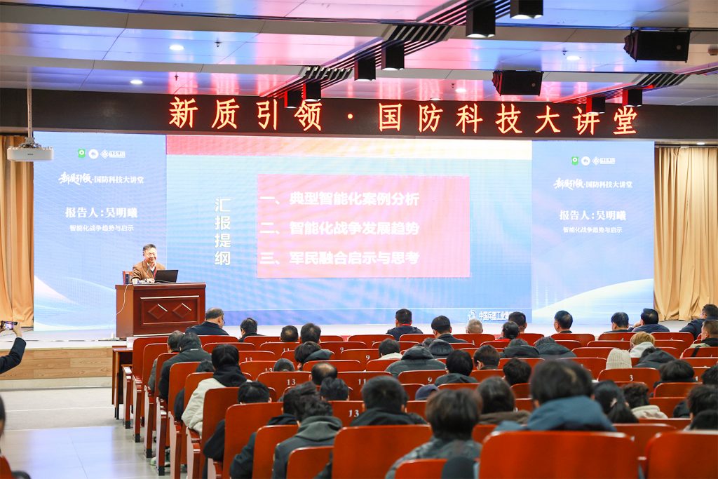 开幕式前,“国防科技大讲堂”率先开讲。国防大学教授刘晋豫少将、国防科工局科技委战略组专家彭艳萍、中国兵器集团首 席科学家吴明曦分别以“新质生产力,形成战斗力”“科学技术创新与新型装备发展”“智能化战争趋势与启示”为题分享,为学子注入前沿思想动能。