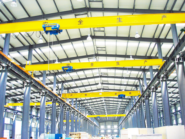 主梁及端梁为焊接箱型梁结构,下翼缘板作为电动葫芦运行轨道,主梁与端梁采用高强度螺栓联接,便于运输及现场安装。