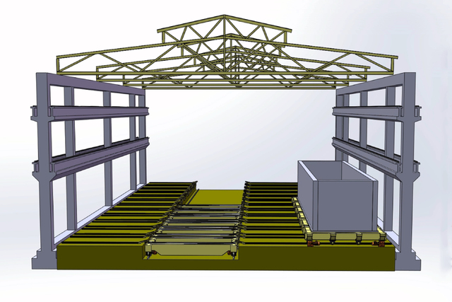 该平车免维护运行,能够实现1300t物料平稳搬运,在车间横向和纵向穿梭;全车精准定位,过轨精度控制在±0.5mm。