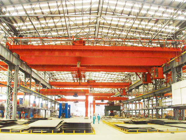 本起重机采用挂梁吊运长件钢坯、板材、棒材、盘圆等物品,配置电磁吸盘或夹钳或特殊群钩进行吊装,主要由箱形桥架、起重小车、大车运行机构、司机室和电气控制系统组成,配有停电保磁系统。起升机构多采用单电机、双减速器、双卷筒布置,呈双吊点形式。挂梁布置形式分垂直于主梁或平行于主梁两种。其余形式与QD型起重机相同。