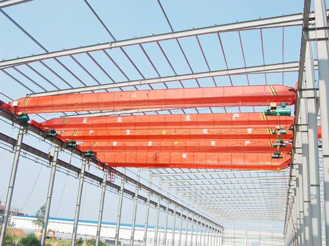 电动单梁起重机由钢板与工字钢组焊成的主梁、端梁、电动葫芦及运行机构组成,电动葫芦沿主梁工字钢下翼缘运行,完成物品的吊运工作,具有结构轻巧、安装维护方便等特点,广泛应用于工厂、仓库、料场等不同场合吊运货物,禁止在易燃、易爆、腐蚀性介质环境中使用。工作级别为A3-A5。