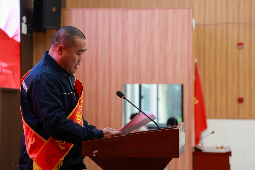 宣讲中,李杰结合自身十五年起重机械装配生涯,分享了从普通学徒成长为行业技术专家的蜕变历程。他讲述了带领班组攻克超大吨位起重机等重大项目难题,独 创“动态预演工作法”,将生产周期大幅压缩的创新实践,以及深耕技术革新取得的重要创新成果的奋斗经历。